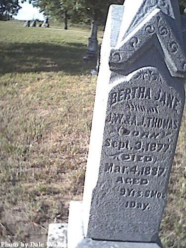 | Thomas, Bertha Jane | 3 Sept 1877 | 4 March 1887 | 9y 1d, dau of J.W. & A.J. |