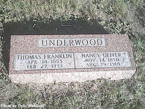 | Underwood, Thomas Franklin | 14 Apr 1855 | 27 Feb 1933 | same stone as Nancy |