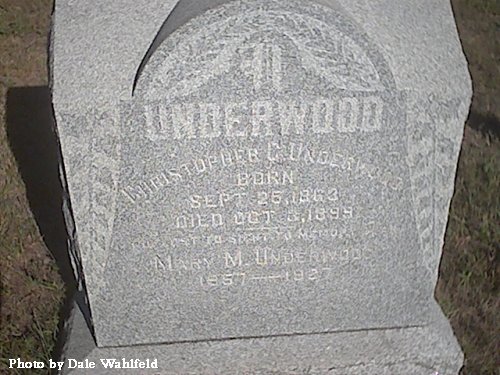 | Underwood, Mary M. | 1857 | 1927 | same stone as Christopher |