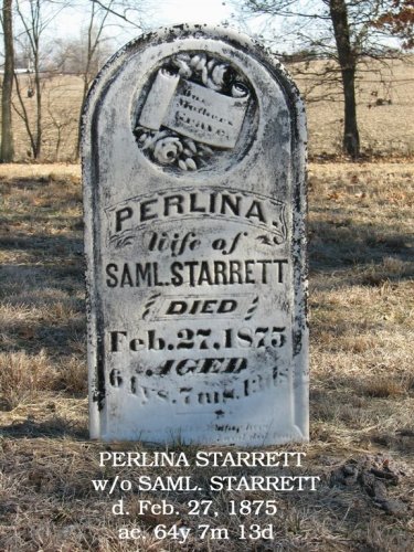 | Starrett, Perlina |   | 27 Feb 1875 | 64y 7m 13d, wife of Saml. |