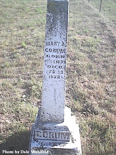 | Corum, Mary A. | 1 Feb 1852 | 23 Feb 1872 |   |